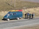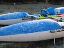 По идее, сегодня мы должны выплыть быстро: ведь катамараны собирать не надо, они доехали в сдутом виде на крыше гезели. Надо их просто надуть. Вот тут то и начинаются приколы: адмиральский кат надуваться не желает. Вернее, он надувается, но спускает катастрофически быстро. В чем дело? Ведь только вчера всё было нормально, а с тех пор кат лежал себе преспокойненько на крыше баса. Оказалось, что при транспортировке жесткие наружные гондолы протерли несколько дыр в чернушном внутреннике по месту складки. Клеимся. Тормозим. Надуваем. Все равно травит, но всё же меньше. Черт с ним, будем чаще подкачиваться, надо плыть.