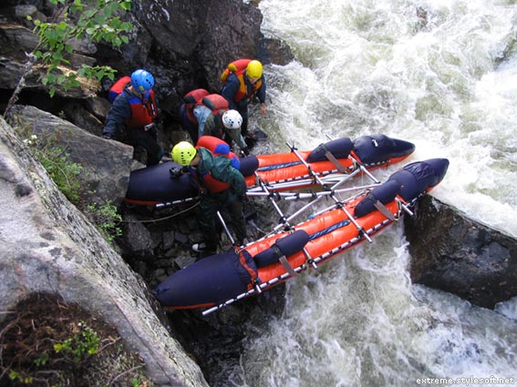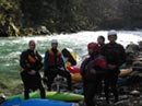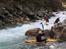 На этот раз всё проходит гладко, да и буф получается нормально. Ну что, после такой разминки можно двигаться дальше. В Оверкиле всё у всех благополучно, только кат-2 ненадолго застревает в камнях внизу слива. Сразу после этого начинается финишная серия препятствий. Сославшись на плохое самочувствие (простуда), Белокуров уступает право первопроходца Саше. И подговаривает его на всякие глупости. В результате за очередным поворотом вижу следующую картину: довольный как слон Белокуров потирает руки и хихикает, а Козырев эскимосит ниже по течению. Оказывается, Лёша подбил его залезть в какую-то задницу, где по его словам тот чуть не скрутил картвил. Сам же он пошёл, разумеется, по более тривиальной траектории.