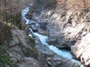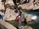 Теперь едем на Киши. Воды за эти два дня стало ещё меньше, даже канализации не осталось. Сначала идет смешанный экипаж катамарана-2: Сергей-Оля. Зачем-то этот самый смешанный экипаж лезет в тесные первые Киши, где закономерно застревают минут на 15. Зато вторые проходят без проблем, бочка там совсем ослабела. Прохождение на каяке оказалось не совсем благополучно. В первых Кишах совершенно для меня неожиданно каяк достал носом дна, в результате чего я получил неслабый удар по ногам; повезло ещё, что не запинился. Зато на этот раз удачно пролез между скал. Во вторых Кишах буф снова не получился, и я полетел через свечку, поэтому пришлось заносить каяк для повторного прохождения. Ох и нелёгкая эта затея, обносить вторые Киши понизу. Зато прохождение дубль два прошло как по маслу.